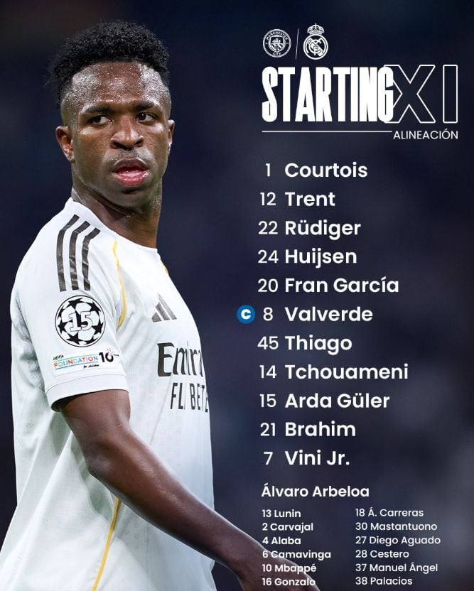 - Real Madrid: T. Courtois; T. Alexander-Arnold, A. Rüdiger, D. Huijsen, F. Mendy; F. Valverde, A. Tchouaméni, T. Pitarch; B. Díaz, V. Júnior, A. Güler (Mbappé) .