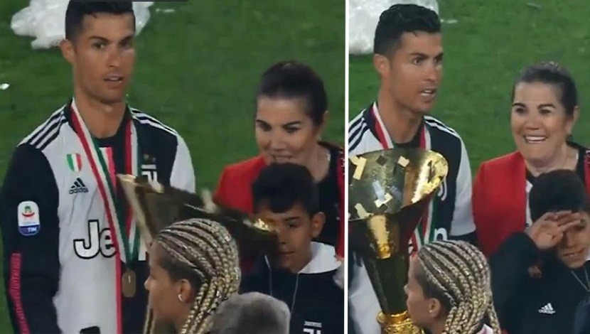 Cristiano Ronaldo cargaba el trofeo de la Serie A en las manos, tal como se ve en los clips compartidos en YouTube. Al mismo tiempo, el jugador posaba para los fotógrafos junto a todos sus acompañantes.