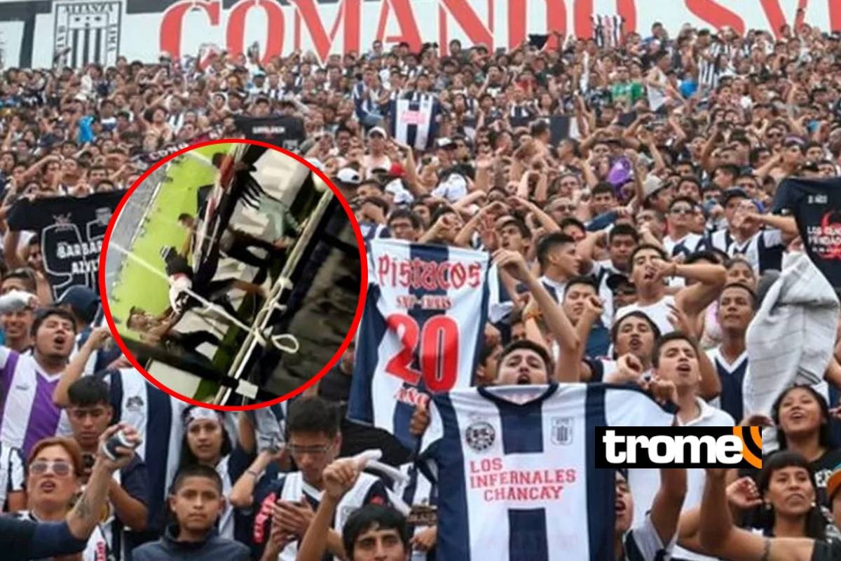 Según las imágenes compartidas en las redes sociales, se ve como unos hombres vestidos con la mica de Alianza Lima, quienes serían hinchas también, desamarraron la bandera del Comando Sur y se la llevaron, lo que provocó la irá del público.