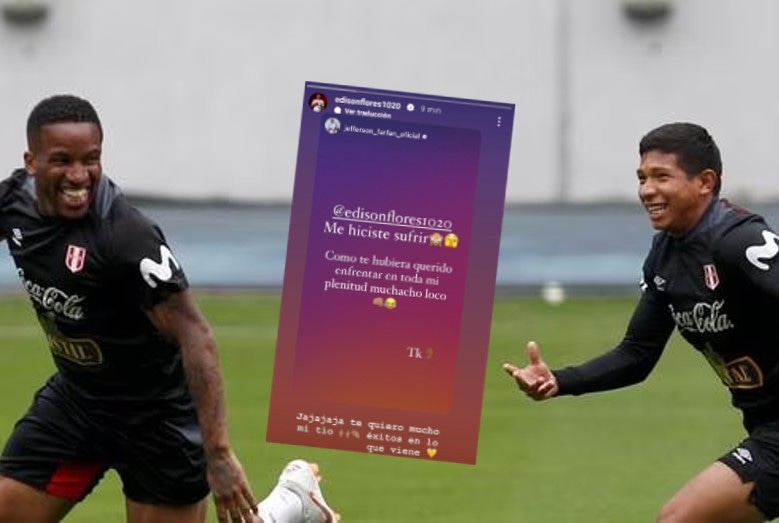 “Edison Flores. Me hiciste sufrir. Cómo te hubiera querido enfrentar en toda mi plenitud, muchacho loco”, publicó Jefferson Farfán, reconociendo las dos opciones claras de gol que tuvo Edison Flores en el partido.