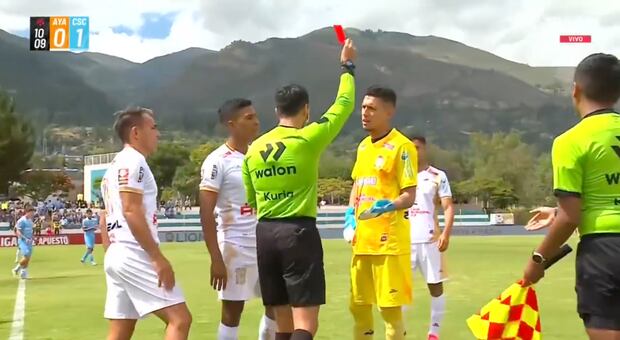 11′ Tarjeta roja a Juan Valencia, arquero de Ayacucho, por tomar el balón fuera del área.