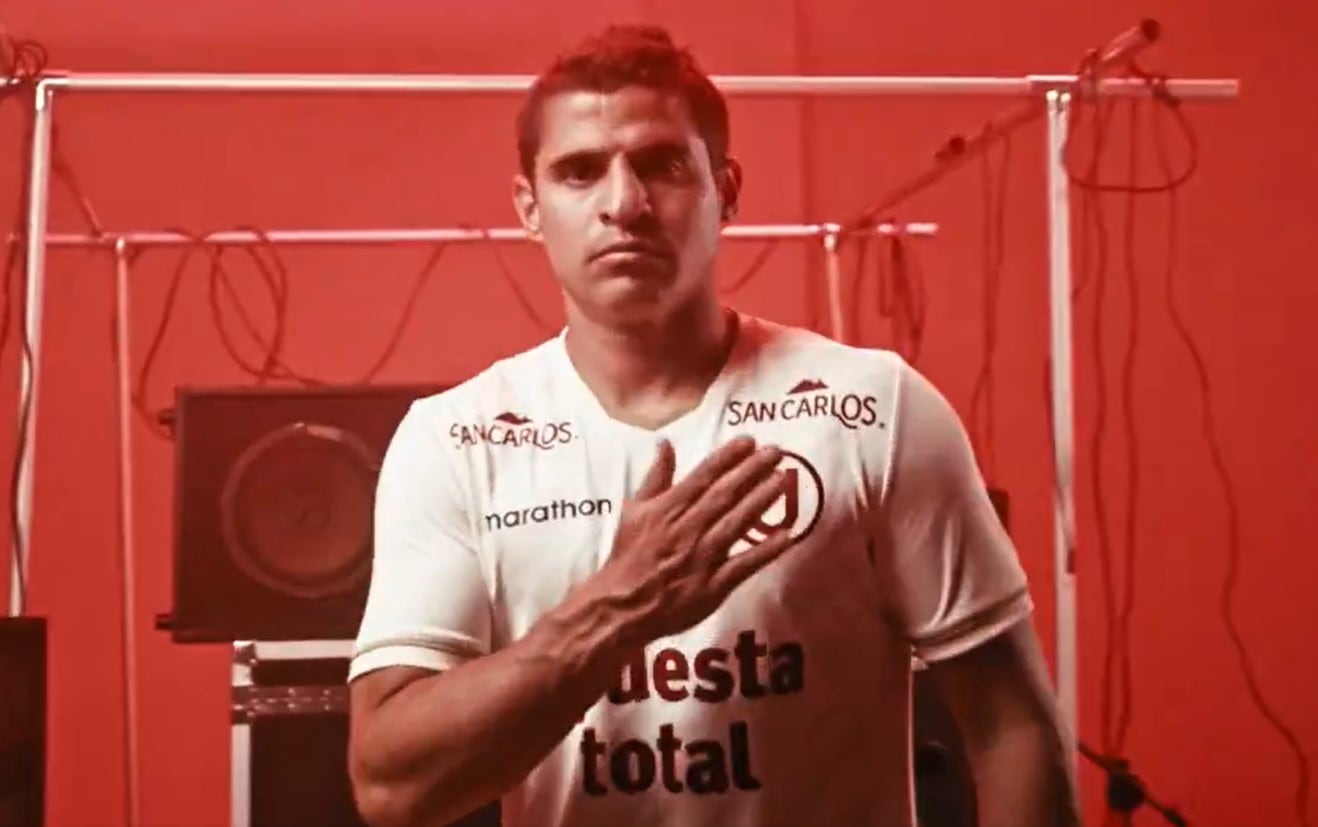 En esta ocasión, modelaron el nuevo uniforme las figuras de Universitario; Aldo Corzo, Jairo Concha y Horacio Calcaterra. Cabe destacar que solo fue presentada la camiseta principal, y no las indumentarias de reserva, como la tradicional guinda o granate.