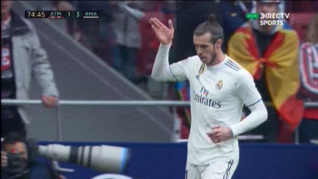 Gareth Bale conectó así el 3-1 de Real Madrid frente a Atlético Madrid en el Estadio Wanda Metropolitano por la fecha 23 de la Liga Santander.