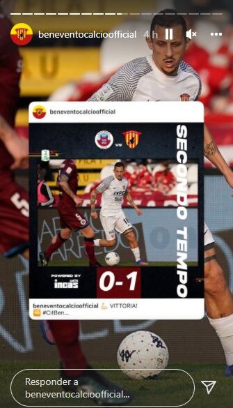 Mediante su cuenta de Instagram, el Benevento festejó la victoria 1-0 sobre el Cittadella. “Victoria”, escribieron en la publicación donde aparece Ricardo Improta, el autor del único gol del partido.