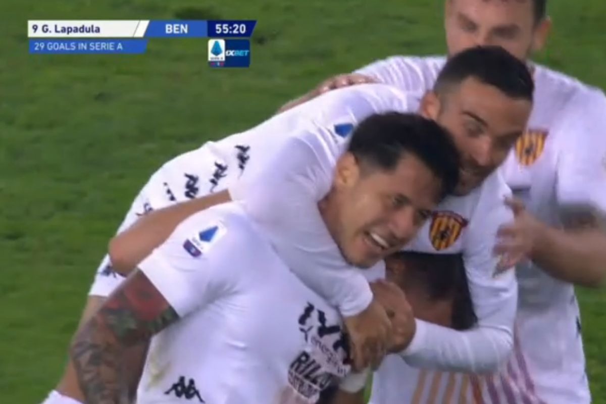 Pasó a los 56′ del segundo tiempo. Gianluca Lapadula recibió un gran pase en profundidad de Gianluca Caprari y consiguió el empate parcial de Benevento en condición de visita.