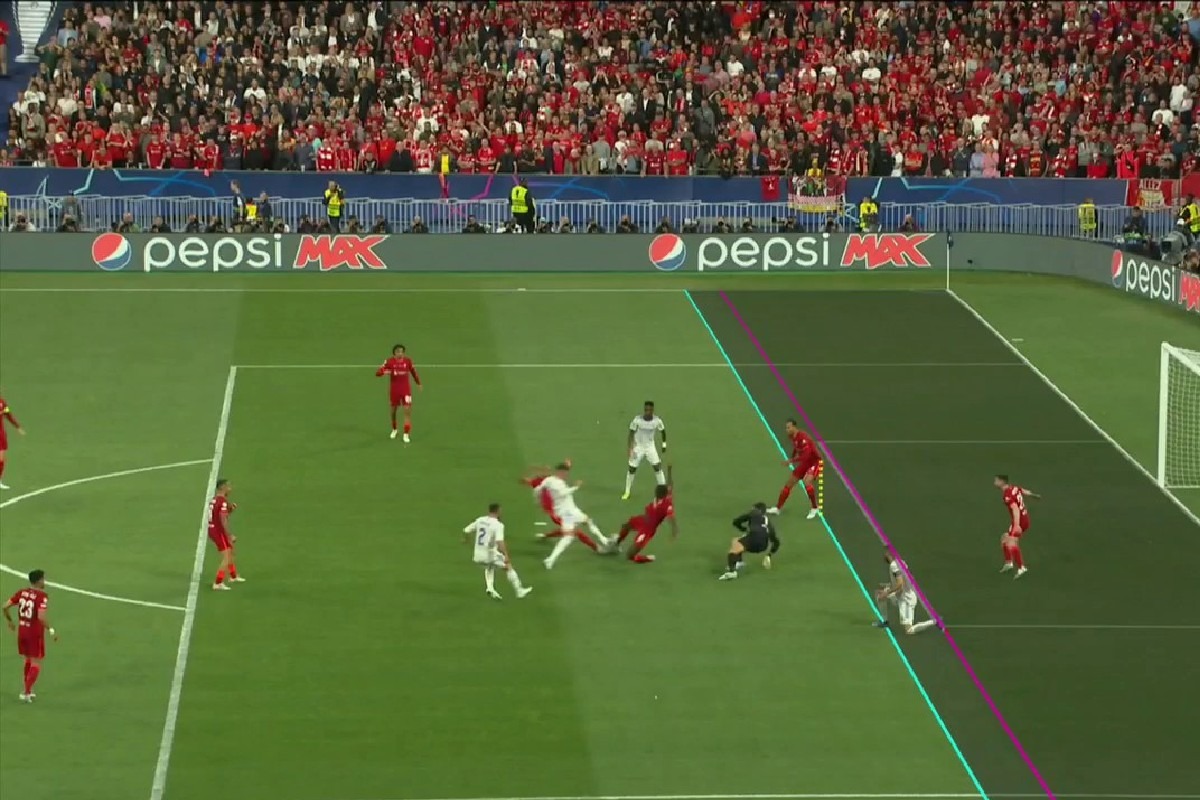 Pero la controversia vino minutos después, ya que el juego no se reanudaba por una revisión en el VAR. Las imágenes televisivas mostraban que Benzema recibió el balón no de un compañero, sino de Fabinho, por lo que según la regla inicia una nueva jugada y lo habilita.