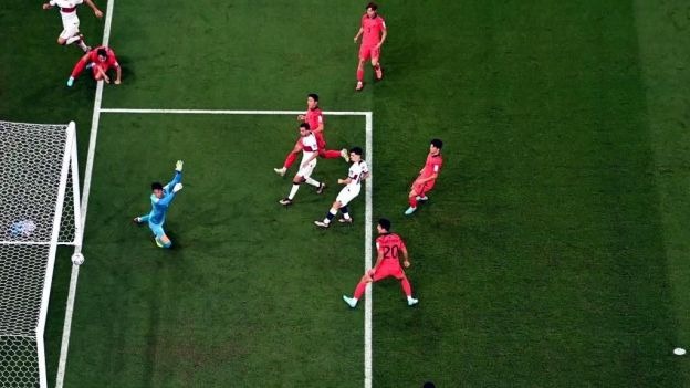 Tras la aceleración, Dalot se internó en el área grande para sacar un servicio sobre el área chica y delante de Young-Gwon Kim. Entonces, desde atrás, casi atropellando a los rivales, se hizo presente Ricardo Horta para anticipar y definir. De esa manera llegó el primero de la jornada para la selección de Portugal.