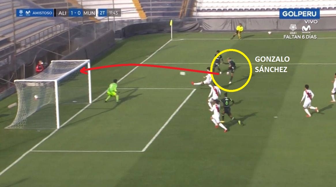 Ocurrió a los 56′ del segundo tiempo. Rinaldo Cruzado metió una gran pelota en el área de Deportivo Municipal y Gonzalo Sánchez consiguió el primero de Alianza Lima en amistoso preparatorio.