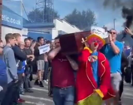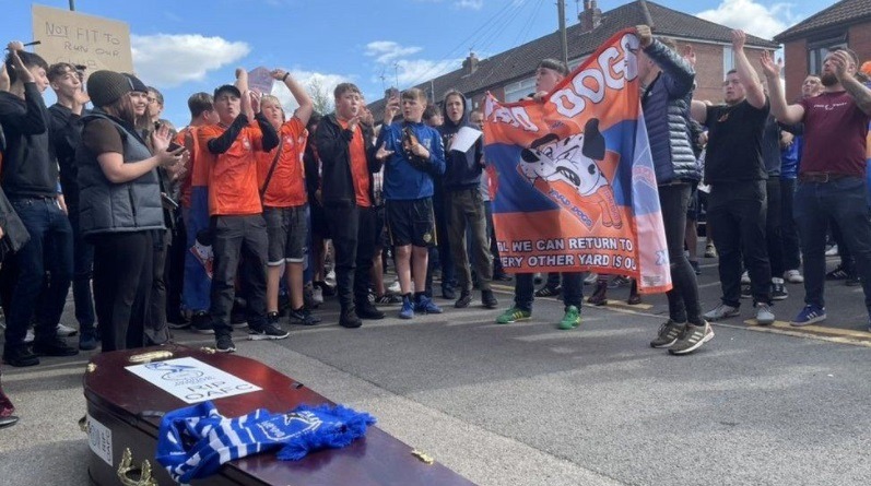 Más de 500 fanáticos del club inglés Oldham Athletic FC realizaron un plantón en los exteriores del estadio Boundary Park para manifestar en contra de los malos manejos de la dirigencia de los ‘Latics’. Los hinchas cargaron un ataúd en sus hombros con las iniciales del equipo: “R.I.P. OA.FC.”, decía el letrero pegado en féretro.