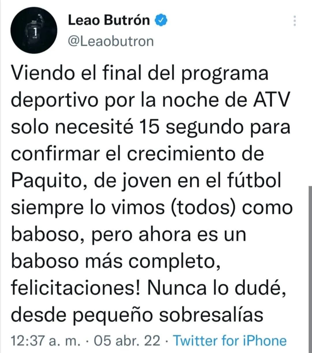 Esta no es la primera vez que ambos porteros se enfrascan en un intercambio de puyas. “Viendo el final del programa deportivo por la noche de ATV solo necesité 15 segundos para confirmar el crecimiento de Paquito, de joven en el fútbol siempre lo vimos (todos) como baboso, pero ahora es un baboso más completo, felicitaciones! Nunca lo dudé, desde pequeño sobresalías”, escribió Butrón en Twitter en abril de este año.
