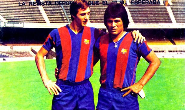 Hugo Sotil y Johan Cruyff tambiénn consiguieron un campeonato juntos en el FC Barcelona, el de la temporada 1973-1974. Lee una de sus anécdotas aquí .