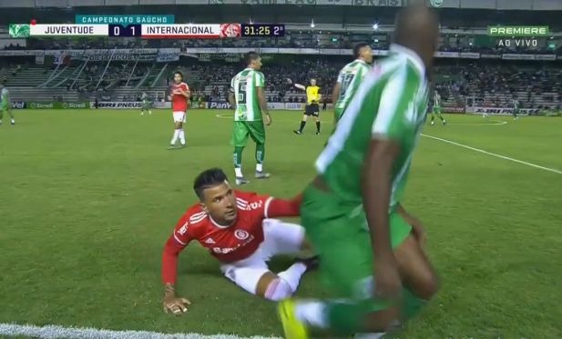 A Víctor Cuesta no le importó las cámaras ni el público. El defensa argentino de Internacional quiso bajarle el short y calzoncillo a rival de Juventud en partido por la primera fecha del Campeonato Gaúcho. Mira el video. ¡De locos!