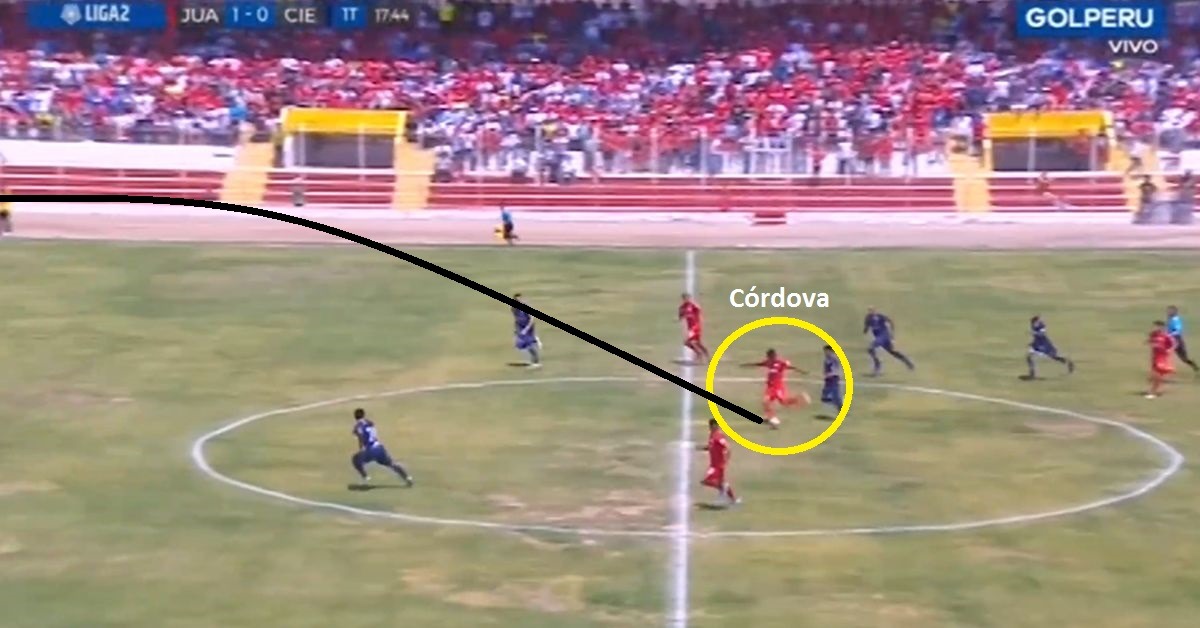 Pasó a los 18' de la primera parte. Cienciano perdió una pelota en la mitad del campo y Jair Córdova no tuvo mejor idea que pegarle desde esa distancia en la Liga 2.