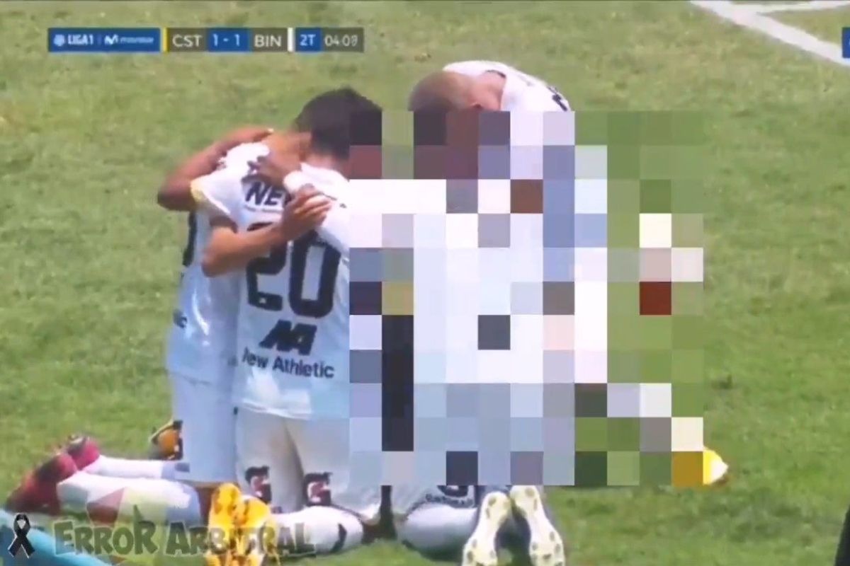 Ocurrió al minuto 49′ del segundo tiempo. El colombiano Dahwling Leudo anotó para Binacional y Jean Deza corrió para celebrar con él. Segundos después todo se salió de control a un costado del campo.