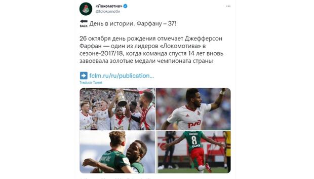 Shcalke 04 también recordó la importante fecha para uno de sus más recordados goleadores “Feliz cumpleaños Jefferson Farfán” junto a un emoji festivo. Lokomotiv de Moscú hizo lo propio “El 26 de octubre, Jefferson Farfán celebra su cumpleaños 37, uno de los líderes del Lokomotiv en la temporada 2017/18, cuando el equipo volvió a ganar las medallas de oro del campeonato nacional 14 años después” y compartió fotos del titulo alcanzo por la ‘Foquita’.