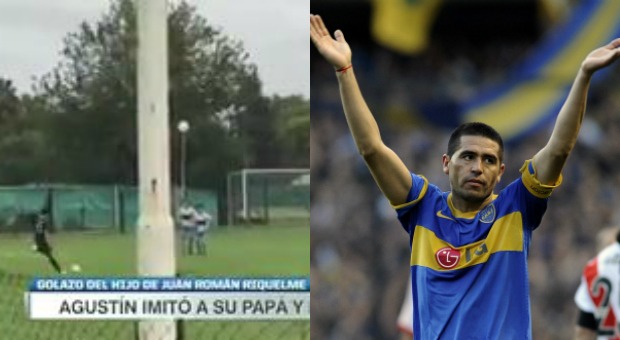 Como papá. El hijo mayor de Juan Román Riquelme, Agustín de 13 años, copió los movimientos del '10' y marcó un golazo de tiro libre en las categorías inferiores de Boca Juniors. El video rápidamente se volvió viral en las redes sociales.