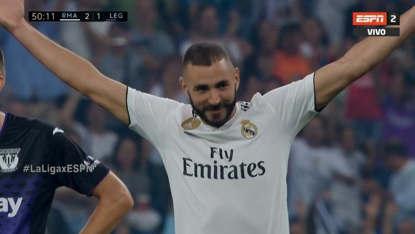 Pasó a los 49' del segundo tiempo. Marco Asensio puso un gran centro a la cabeza de Karim Benzema. El francés superó a la defensa de Leganés y conectó el segundo de los madridistas.