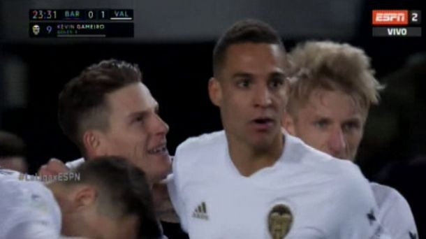 Kevin Gameiro logró así el 1-0 de Valencia ante Barcelona en el Estadio Camp Nou por la fecha 22 de la Liga Santander. Golazo del francés.