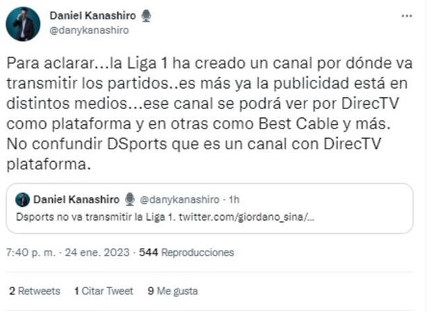 El inicio de la Liga 1 2023 se mantiene en incertidumbre, tanto por la situación sociopolítica del país como por el conflicto por los derechos de televisión. En esta situación, una publicación del periodista Daniel Kanashiro levantó polvareda, sorprendiendo a un sector de la hinchada que ya esperaba ver el fútbol peruano por DirecTV Sports.