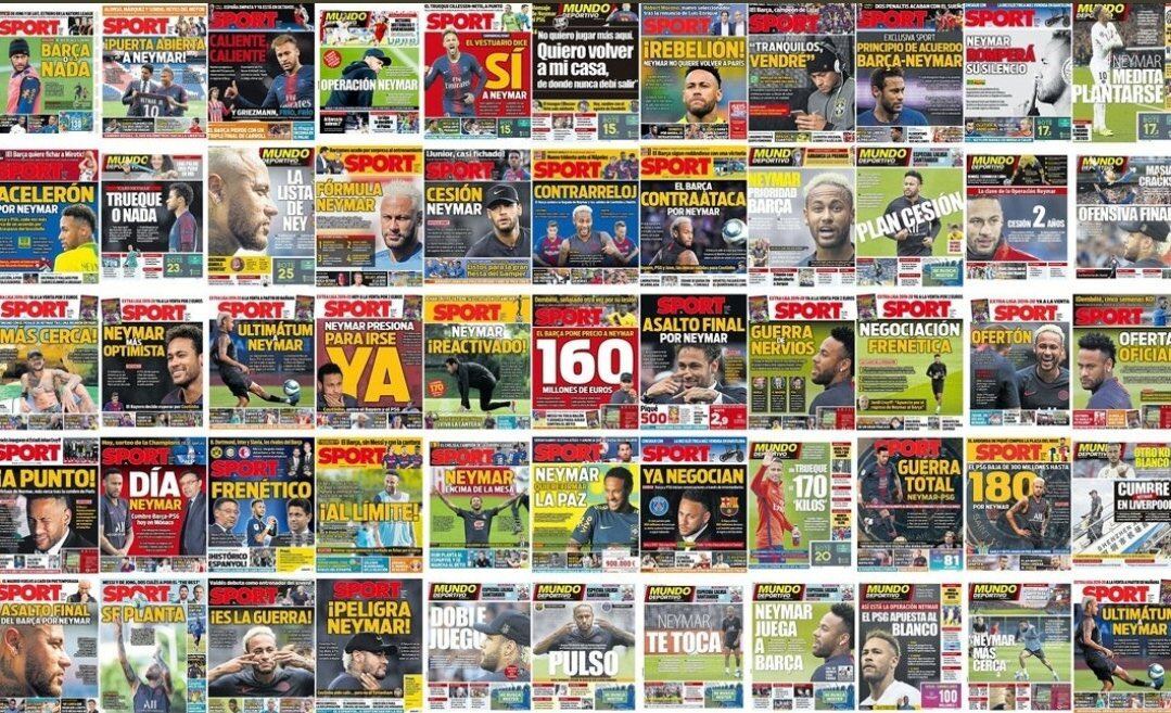 Pero nadie esperaba la respuesta de France Football. La famosa revista contratacó recopilando las 55 tapas de los medios catalanes con el posible regreso de Neymar al Barza. Con ello, dejó en claro que desde España también hicieron ‘acoso’ en otro momento.