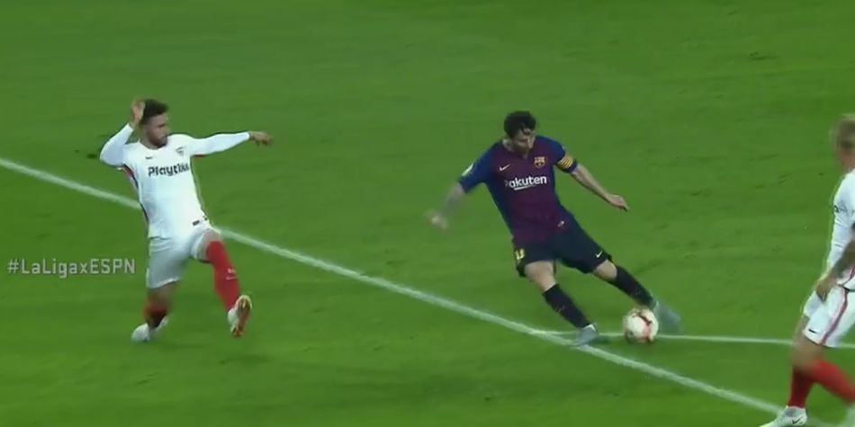 Pasó a lo 12' de la primera parte. Lionel Messi se sacó a un defensa de Sevilla con mucha calidad y luego venció el arco Vaclík por la Liga Santander.