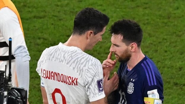 Luego de tantos dichos por el Balón de Oro 2021 que ganó Lionel Messi a Robert Lewandowski, las dos estrellas se cruzaron durante el partido entre Argentina y Polonia en el cierre del grupo C de Qatar 2022. De aquel enfrentamiento particular quedaron un par de imágenes: el ‘9′ de Barcelona disculpándose por una falta contra el 30 de PSG y la charla sobre el final del compromiso.