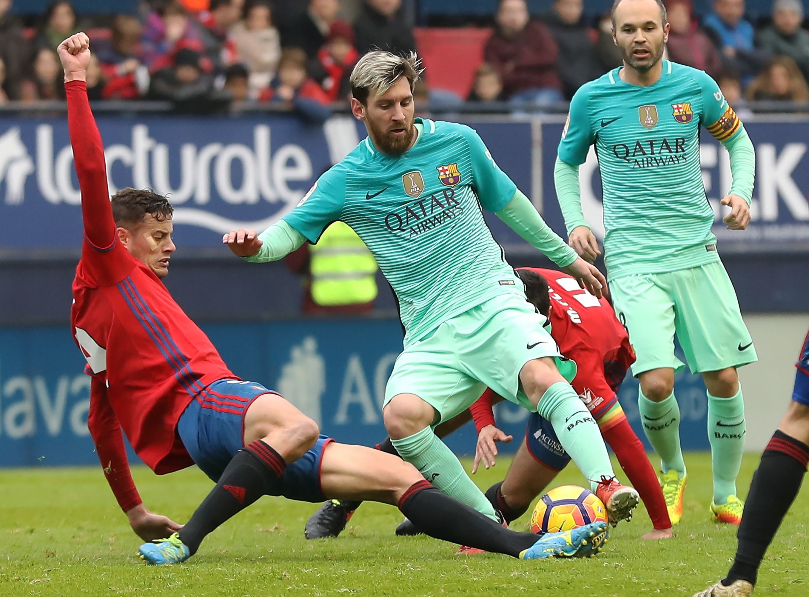 Lionel Messi golpeó la pelota con el empeine como si estuviese jugando un partido de fulbito, sorprendiendo a los defensas del Osasuna.