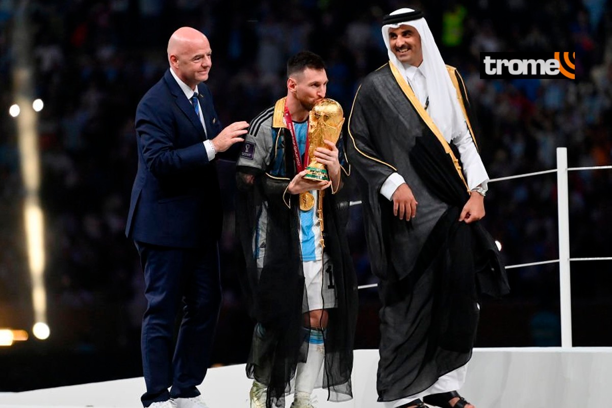 Argentina es el campeón del Mundial Qatar 2022 y tiene como figura principal a Lionel Messi, quien celebra su último mundial por todo lo alto. Sin embargo, un hecho curioso marcó la celebración, el emir de Qatar le colocó al líder de la Albiceleste una capa negra previo a recibir el trofeo de la Copa del Mundo.