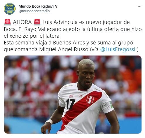 Tras el cierre de contrato entre Boca Juniors y Rayo Vallecano, club dueño del pase de Luis Advíncula, el peruano arribaría esta semana a Buenos Aires para ser presentado oficialmente como jugador xeneize. Hace unos días, el lateral derecho se mostró más feliz que de costumbre, pues ya habría conocido que pronto arribaría a tierras gauchas gracias al pedido de Miguel Angel Russo, quien necesita al peruano para enfrentar la segunda etapa de la Copa Libertadores.