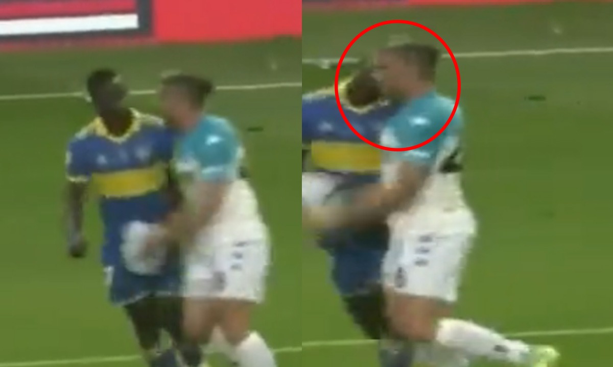 Las cámaras SportsCenter enfocaron el preciso instante en el que el lateral derecho encaró al defensor y le metió un cabezazo. Al instante, el zaguero se tiró al suelo, mientras que los demás futbolistas de Racing salieron al rescate.