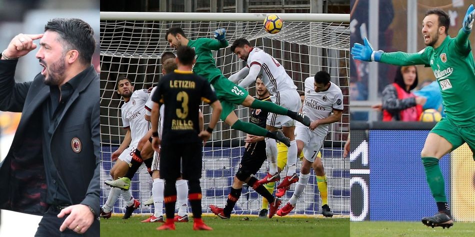 En dos ocasiones se adelantó el Milan, por medio de Giacomo Bonaventura (38) y del croata Nikola Kalinic (57), y dos veces respondió el modesto anfitrión. Primero gracias al rumano George Puscas (50) y después con el extraordinario vuelo del arquero Alberto Brignoli, que remató el balón con la cabeza para lograr el primer punto de su equipo en la Serie A.