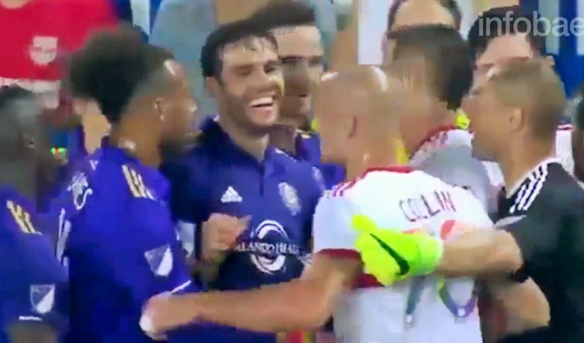 Orlando City perdía el duelo 3-1 por la fecha 23 de la MLS, cuando una jugada en la que intervino Yoshimar Yotún terminó en un conato de bronca. El capitán de los visitantes, Kaká, se acercó hasta el punto caliente e identificó a un ex compañero suyo Aurélien Collin.
