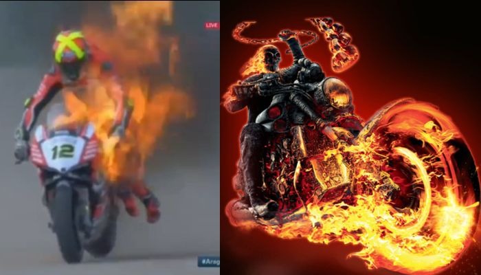Xavi Forés afortunadamente sufrió quemaduras leves en el hombro y cuello tras el accidente, que hizo recordar al personaje animado Ghost Rider.