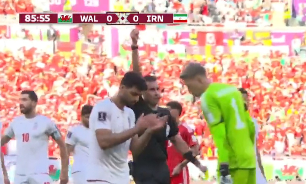 A los 86 minutos, en una acción de gol por parte del cuadro asiático, el guardameta del elenco europeo salió con mucha fuerza e impactó con el futbolista iraní. Al instante, el árbitro le mostró la tarjeta amarilla, sin embargo, fue llamado por el VAR para revisar la jugada.