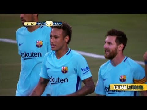 Esto ocurrió en el minuto 31 de la primera parte. Lionel Messi elaboró una gran jugada a unos metros del área de Manchester United y metió una pelota para Neymar.