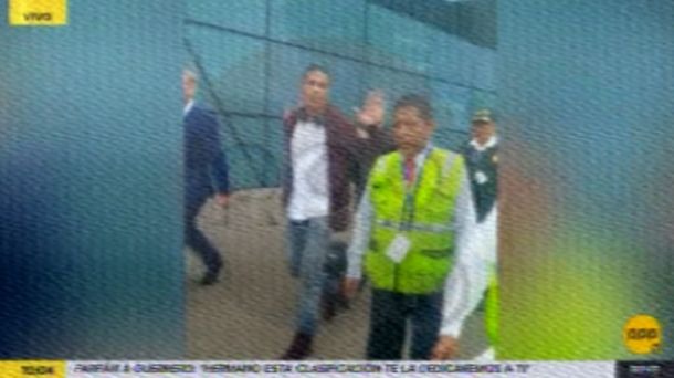 Paolo Guerrero sintió el respaldo y saludó a los hinchas mientras se retiraba del lugar. El delantero viajó desde Brasil con su abogado y un bioquímico, quienes lo ayudarán a preparar su defensa ante la FIFA.