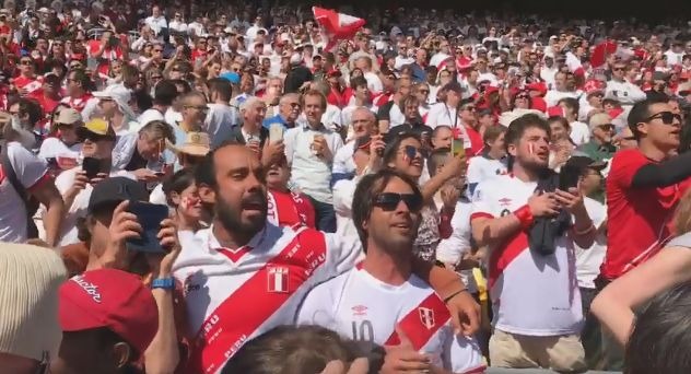 A través de Facebook, Walter Enrique Inostroza Hoyos colgó un video en el que muestra como los asistentes peruanos cantaron a viva voz el Himno Nacional en el Westpac Stadium.