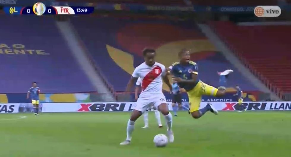 Perú vs. Colombia en Brasilia por el tercer lugar de la Copa América 2021: Wilmar Barrios exageró una falta de André Carrillo, quien regresó tras una suspensión por la tarjeta roja que recibió en los cuartos de final ante Paraguay.