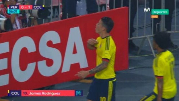 James Rodríguez solo tuvo que cruzar la pelota para marcar el 1-0 a Perú en la última fecha de las Eliminatorias Rusia 2018 en le Estadio Nacional de Lima.