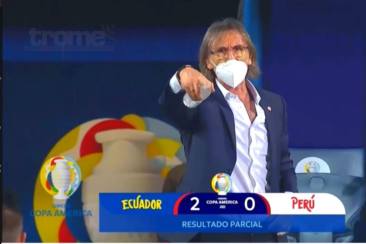 Poca veces se puede ver a Ricardo Gareca reclamar contra un árbitro, pero el segundo tanto de Ecuador le hizo hervir la sangre al ‘Tigre’, quien no pudo ocultar su molestia por la manera en que el árbitro español, Jesús Gil Manzano, hizo extender de una manera excesiva el primer tiempo que fue aprovechado por los dirigidos de Gustavo Alfaro en la cuarta fecha del Grupo B de la Copa América 2021.