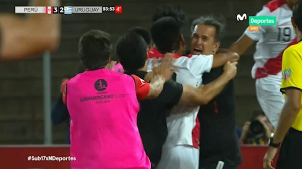 Cuando sucedió el tercer gol de Mathías Llontop, los jugadores de la 'Blanquirroja' corrieron a abrazarse con el entrenador Carlos Silvestri, uno de los artífices de esta selección peruana Sub 17.