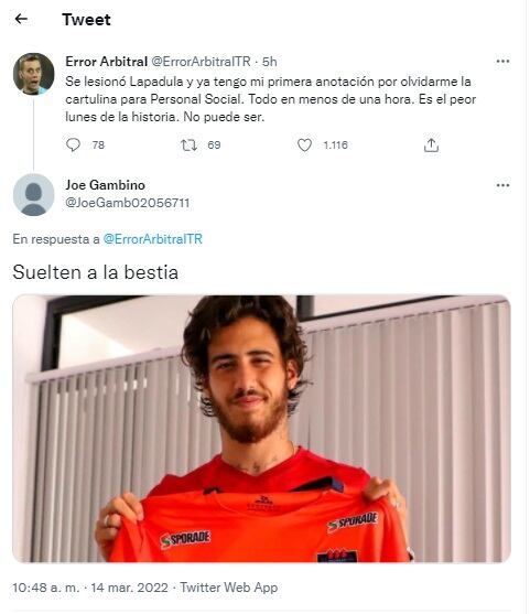 “Suelten a la bestia”, tuiteó el usuario ‘Joe Gambino’ junto a una fotografía de Beto da Silva, atacante del club César Vallejo de Trujillo.
