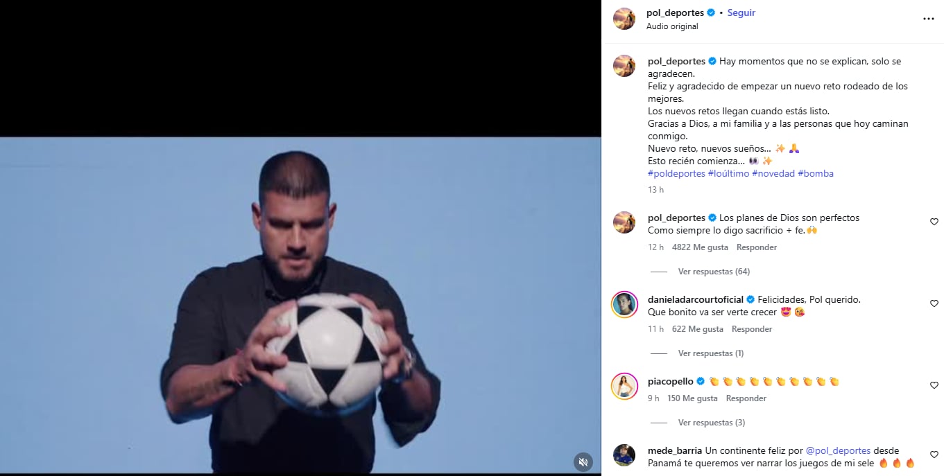 “Hay momentos que no se explican, solo se agradecen. Feliz y agradecido de empezar un nuevo reto rodeado de los mejores. Los nuevos retos llegan cuando estás listo. Gracias a Dios, a mi familia y a las personas que hoy caminan conmigo. Nuevo reto, nuevos sueños. Esto recién comienza...”, fue lo que escribió como descripción de su post en Instagram.