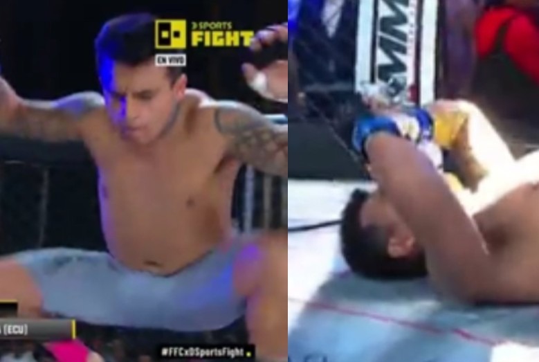Grijalva fue el primero en ingresar a la jaula, haciendo algunos movimientos de calentamiento. Cuando ya se encontraba pisando la lona y todos esperaban la llegada del peruano, el ecuatoriano realizó un salto, algo que suelen hacer muchos peleadores para soltar los músculos, sin embargo cayó de muy mala manera.
