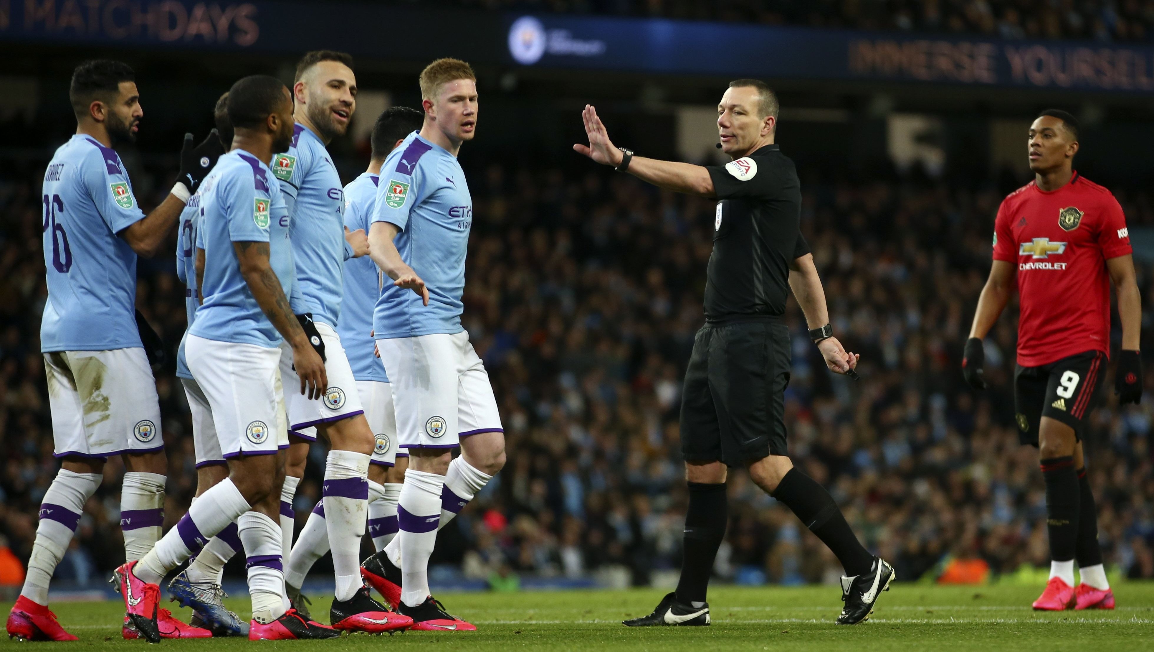 Con frases del tipo: “You’re just a s***!” y otras de carácter ofensivo, los aficionados molestaron al juez sin advertir lo que pasaría luego. Kevin Friend marcó las líneas para la pelota detenida y acto seguido se dirigió a la grada donde estaban los hinchas y les mostró la tarjeta amarilla.