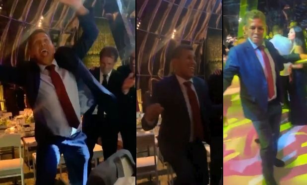 El Puma Carranza le puso la cuota de humor al ‘tonazo’ de Edison Flores y Ana Siucho. El exjugador crema comenzó a moverse al ritmo del baile de la ‘Malagua’ y desató un ataque de risa de las personas que lo rodeaban. Entre ellos, nada menos que el técnico Franco Navarro, y Horacio Benincasa, que lo incitaba a que siga moviendo el esqueleto.
