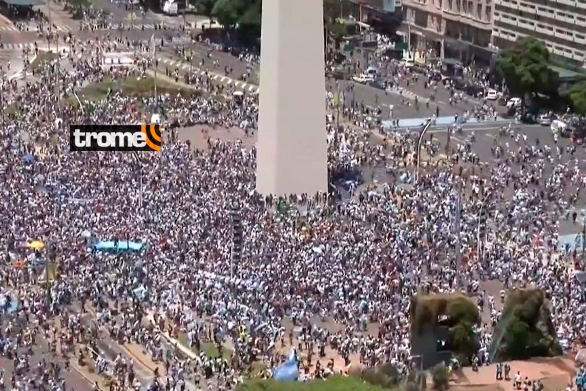 En imágenes difundidas por Twitter, se observa la multitud de gente que se encuentra en los alrededores del Obelisco. De esta manera, la avenida Corrientes se convirtió en el epicentro del festejo ante la posibilidad que un país latinoamericano pueda llevarse la Copa del Mundo.