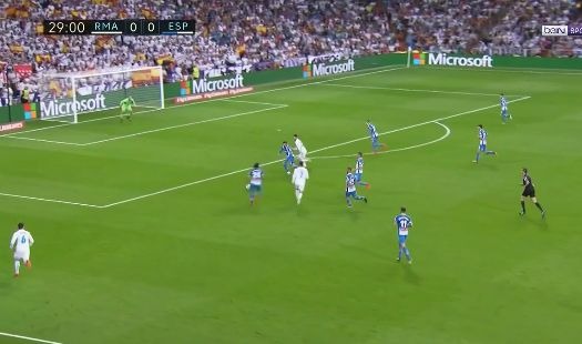 El portugués metió un gran pase profundo para Isco y el español venció al portero de Espanyol para marcar el 1-01 del Real Madrid por Liga Santander.