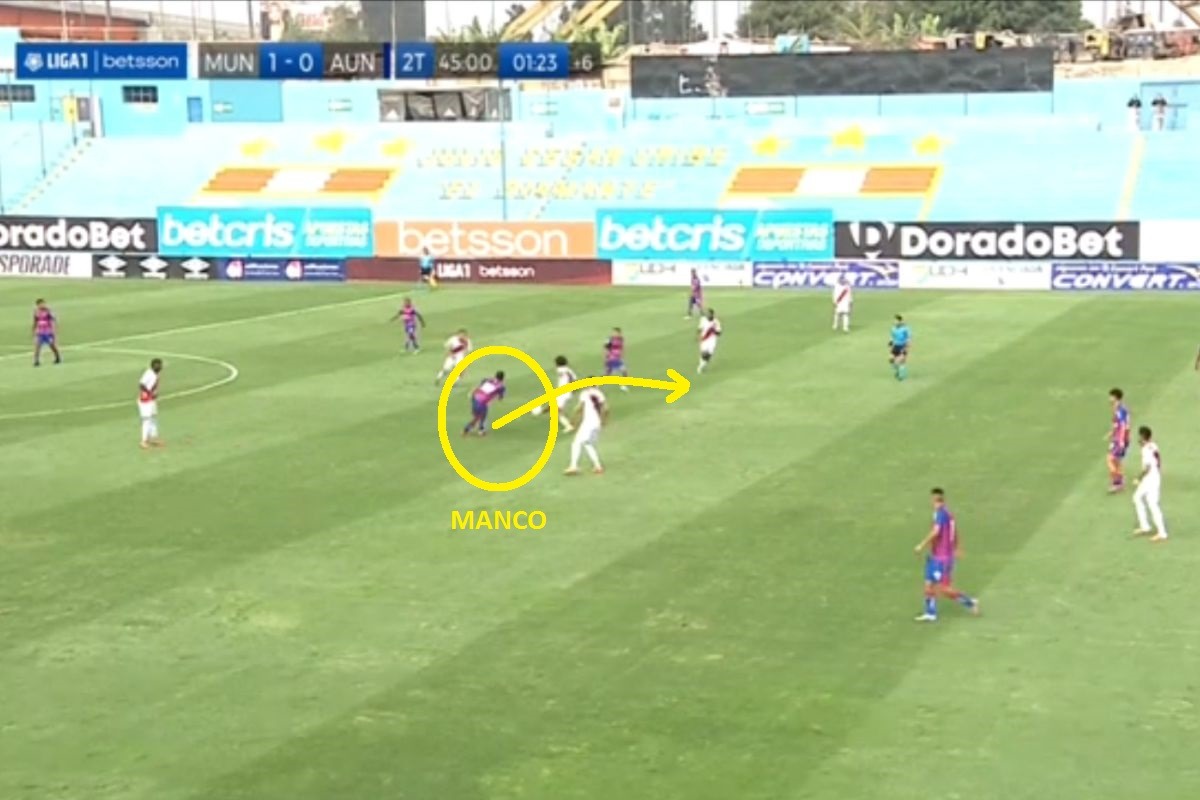 Pasó en los minutos finales. Axel Sánchez soltó el esférico para Reimond Manco y este se la devolvió con una genialidad que solo él lo sabe hacer en el campeonato peruano. Jugadores de Deportivo Municipal quedaron sin reacción.