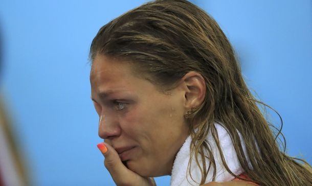 En una tensa conferencia de prensa tras su competencia, Efimova dijo con voz temblorosa: “Usualmente en los Juegos Olímpicos se detienen todas las guerras. Pero ahora ellos intentan hallar una manera de cómo vencer a Rusia”.